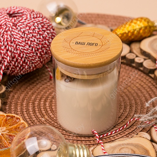 Сувенир-комплимент с ароматической свечой в стеклянной баночке.