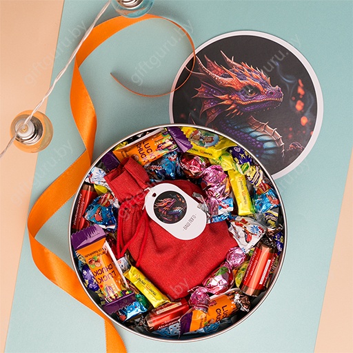 Много-много конфет и занимательный деревянный пазл-дракон.