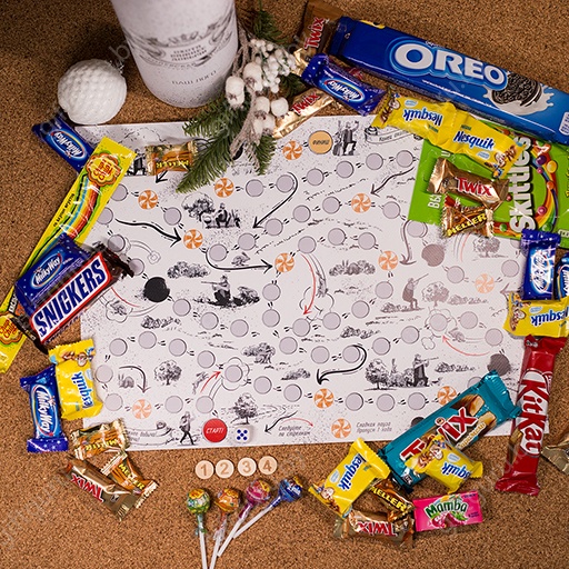 Детская игра-ходилка в сочетании со вкусным наполнением порадует всех без исключения детей, независимо от возраста или предпочтений. Игра будет служить долго и останется на долгую память для ребенка, а вкусный сюрприз в составе подарка порадует ребят на все Новогодние каникулы.