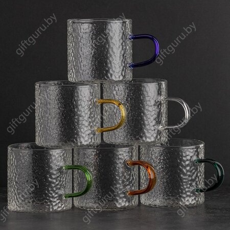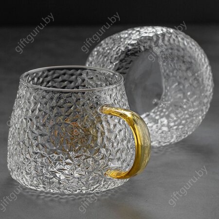 Кружка рельефное стекло с желтыми ручками