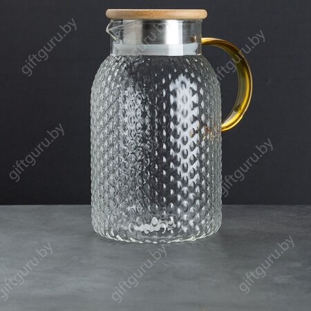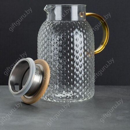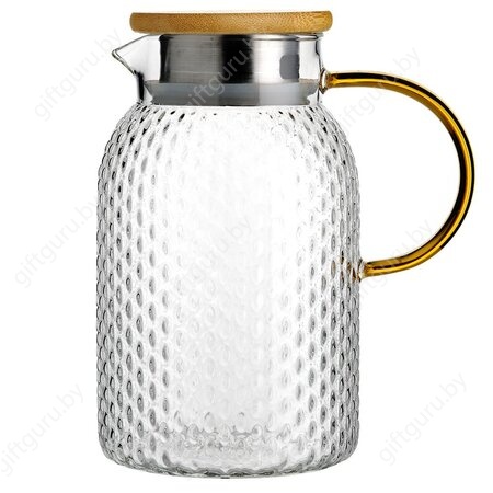 Кувшин с бамбуковой крышкой-ситом, стекло 1400 мл, желтая ручка