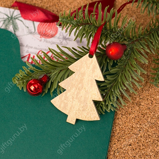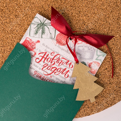 Открытка с деревянной елочной игрушкой.