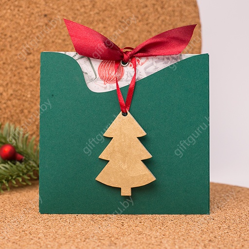 Открытка из дизайнерской бумаги, калька, елочная деревянная игрушка, плоттерная резка