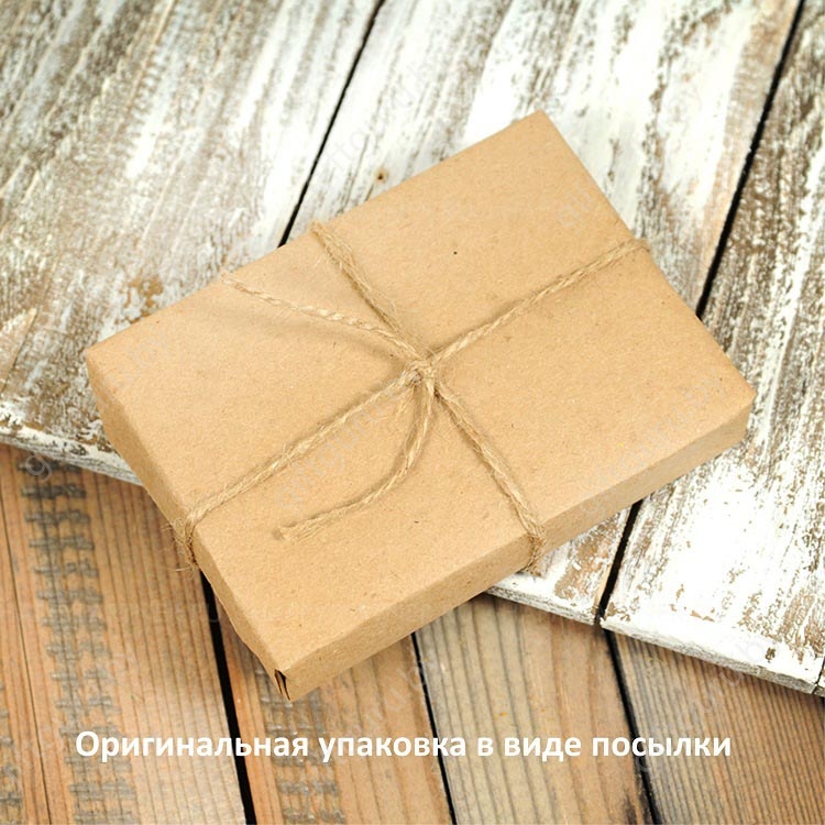 Подарок упакован в оригинальную упаковку – крафтовую бумагу – и обмотан бечёвкой, что делает его похожим на посылку.