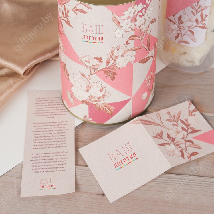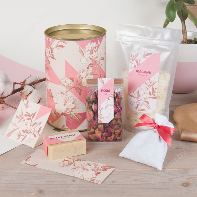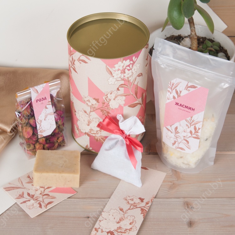 Все, что нужно для свободных минут наедине с собой – натуральное мыло ручной работы, соль для ванны, сухие цветы китайской розы и саше с прекрасными цветочными ароматами. Можно устроить настоящее SPA прямо дома, расслабиться и забыть о делах и быте. Прекрасный набор, который продемонстрирует вашу заботу. Подарок для клиентов, сотрудников, коллег и партнеров на 8 Марта с мылом и прочими принадлежностями для релакса упакован в элегантный круглый тубус.