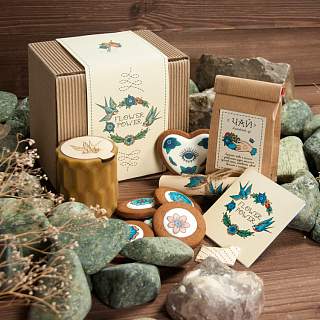 Хюгге учит нас наслаждаться моментом и находить время для себя и своей семьи. Хюгге это сочетание уюта, комфорта и благополучия. И составляющие нашего подарка — нежный букет из сухоцветов, необычные сладости и уютные ароматы для дома, помогут создать нужную атмосферу.