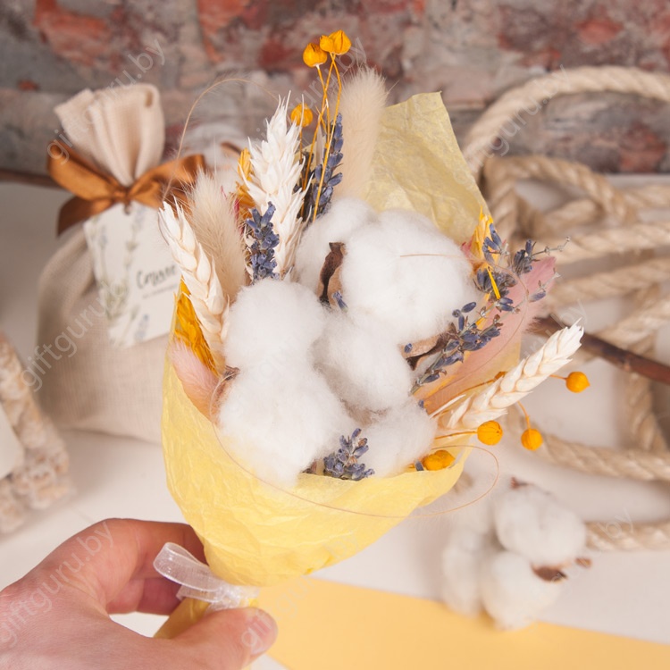 - Букет из сухоцветов (хлопок, лаванда, колоски);